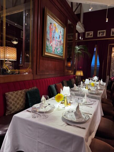 パリではクロスを丁寧に2枚重ねにするのは、店のプライドの表れだ、と。どうせ取り替えてしまうもの。上を汚せば下も汚れる。セットする手間も洗う手間も2倍です。そこのコストを惜しまず、滑らないよう、上質なおもてなしができるように、とのしつらえ。