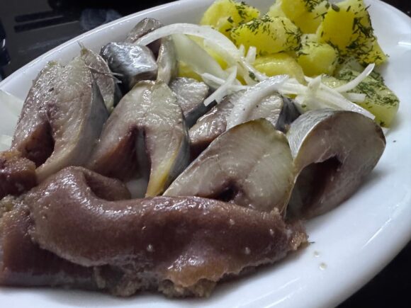 実質一品だけの紹介。ロシアのセリョートカ、ご存知ですか?ニシンの塩漬けだったりオイル漬けだったり。それの過去1、塩がライトなエロっちいの、ありました!