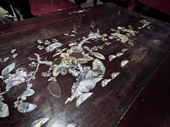 螺鈿を施したテーブルが、そのまま剥き出しに?!