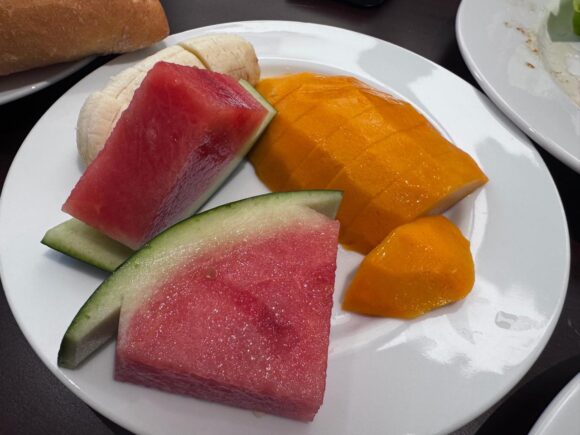 内容としては、料理1品+フルーツジュース+コーヒーかお茶類。フルーツプレートは問答無用でついてるらしい。