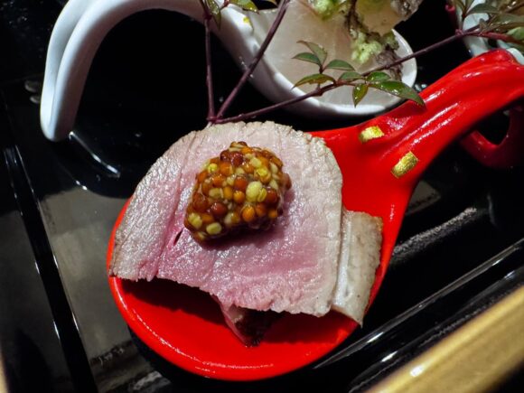 ↑こちらはSHARIのおまかせコース内のお肉で、今回のコラボコースの中のものではありません。が、食べなかったのでご参考までに。美味しいですよ、SHARIの鉄板焼き