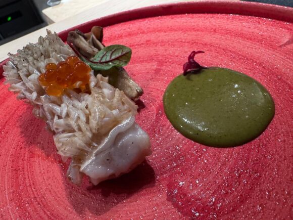 松笠。どちらのお店が手掛けられたか確認するのを忘れたが、完璧な火入れ。そして一片たりとも頃合いを逃していないウロコのサクサク。