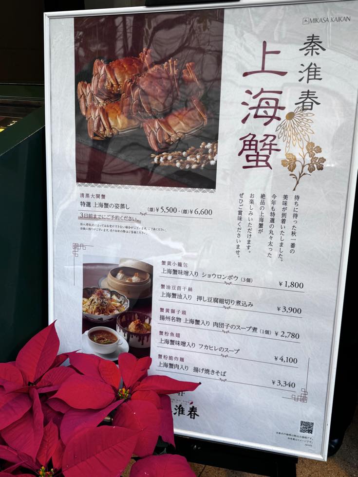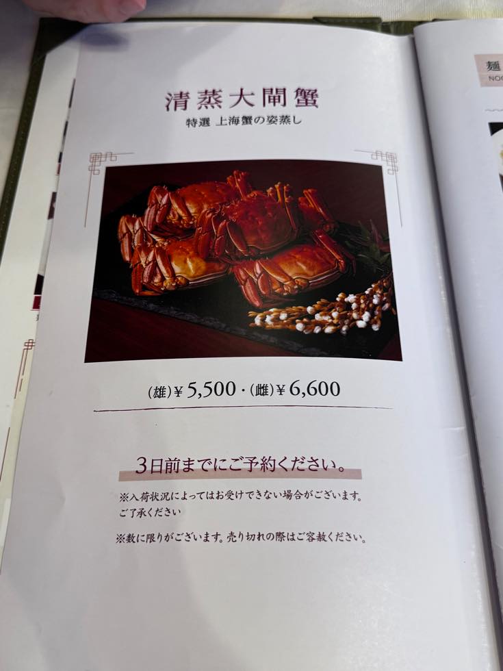 私にとっては、毎日のランチの金額ではなく特別な日の金額。、ああ上海蟹のメニューがいくつもあったから当たり前なんですが…