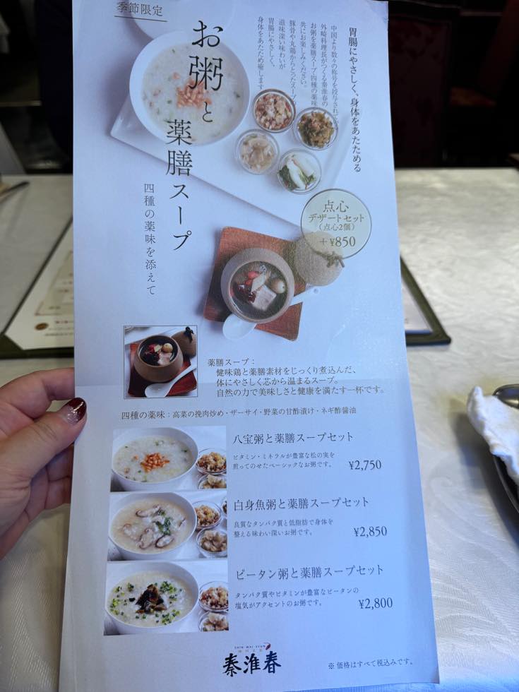 中華は体に負担がかかりそう、というイメージをお持ちの方もいらっしゃるかもしれませんが、逆にいたわれる、こういうメニューもありますね。