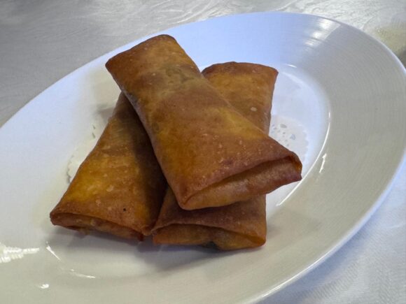普通の、というか、面になってる皮で包んだ揚げ春巻きもありました。が、今回は、こちら。意外と珍しく感じるかたもいるかなと思って、網状のライスペーパーの揚げ春巻き。