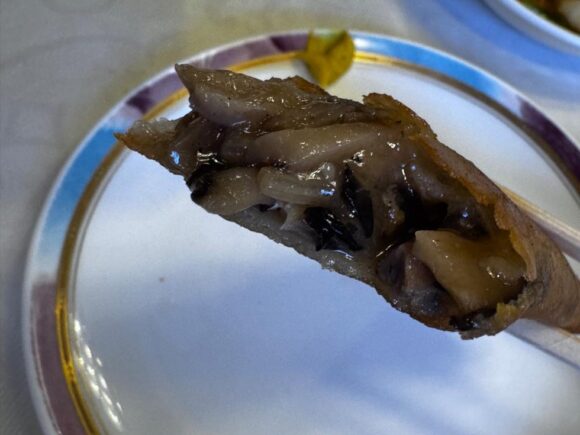 でもこれ、独特のサックサク感がすごく軽いのに、ふわあああっと具材の香りが口の中に広がって、その濃密さと皮の軽さの対比がすごく楽しい♪