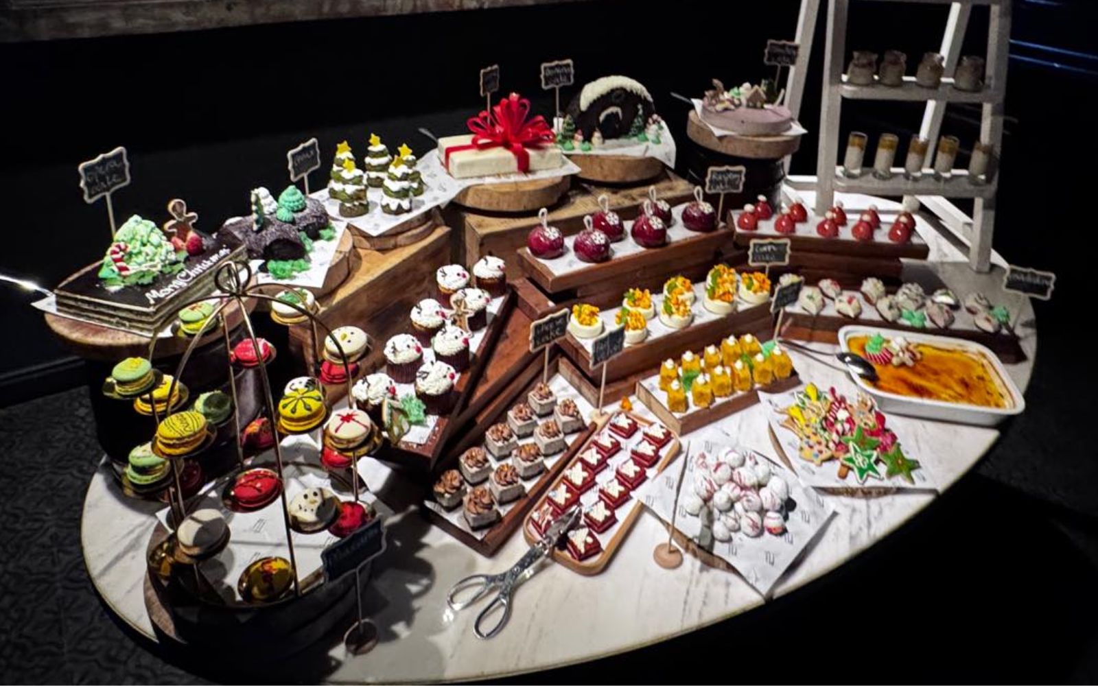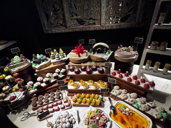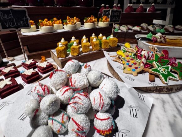 こちらのお店は、屋外的になっているので(エアコンが効いているスペースもある)料理はオープンスペースに並べられているのですが、さすがにスイーツはそうはいかない。
