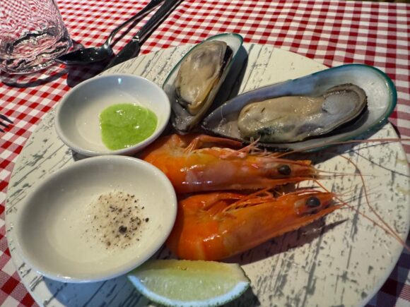 ああ、もうこのシーフードとコールドカッツでも幸せの極み。ワインが美味しい美味しい。