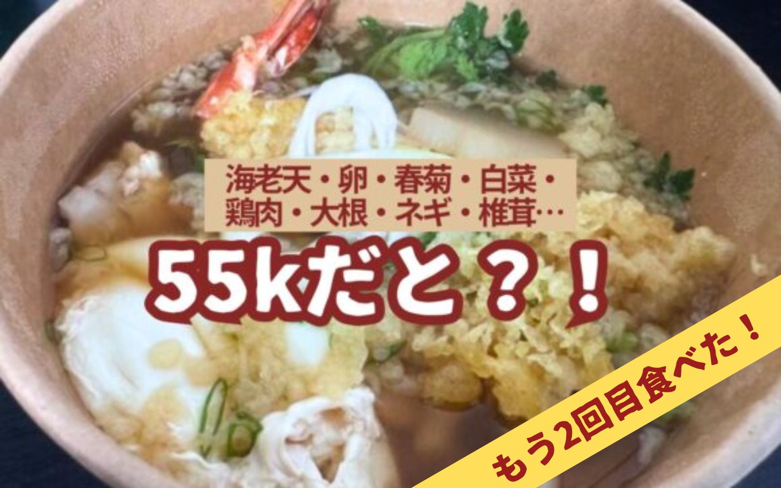 しかし、食材の充実ぶりと、それらを煮込んだ出汁の柔らかさ、なんだったらトッピングにはエビ天ぷらと卵まで入ってて55kとか、これは驚異的ではなかろうか?