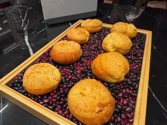 シュー生地みたいなものにチーズを加え得たシンプルな生地ですが、美味しい。これえ、真似っこして作ってみよう。
