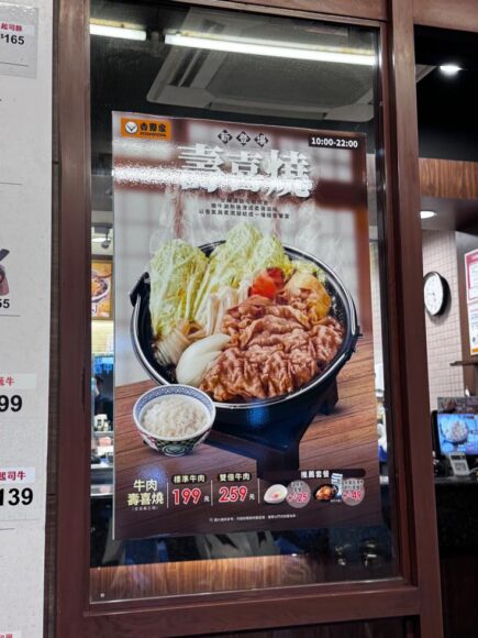 台北ほどではありませんが、日本のお店や、日本を思わせるものがチョイチョイあります。例えば、駅から宿までの間にあった、吉野家。