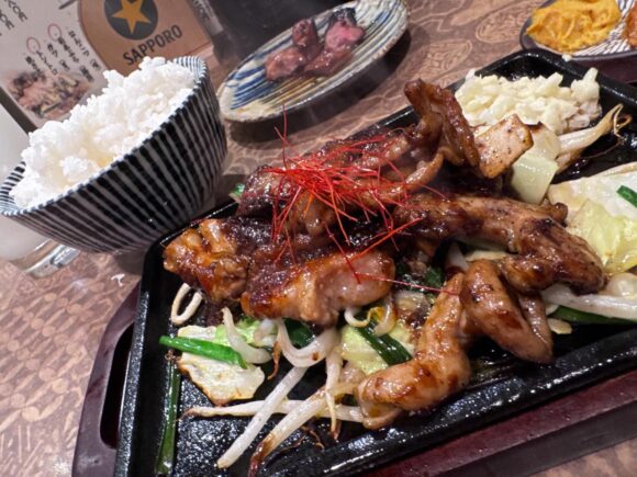 ホルモンの鉄板焼き