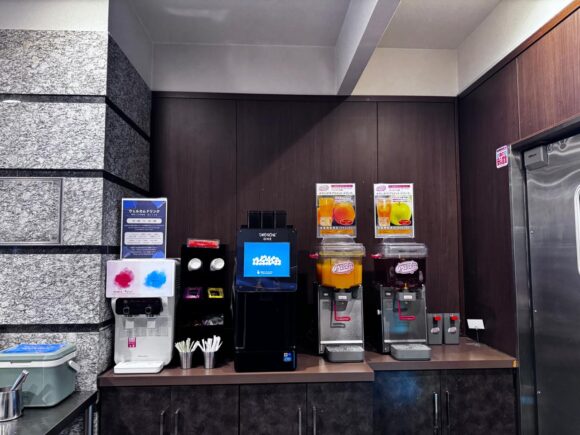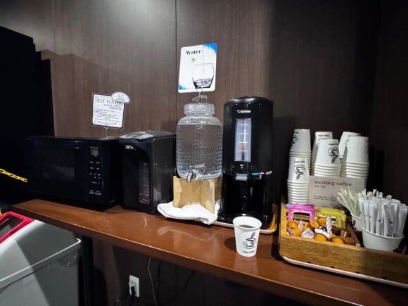 ドリンク設備があって、そこでコーヒーその他のウェルカカムドリンクがあって、それを自由にお部屋にお持ちくださいというシステムだった。