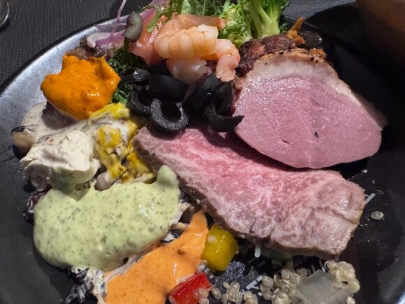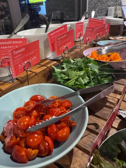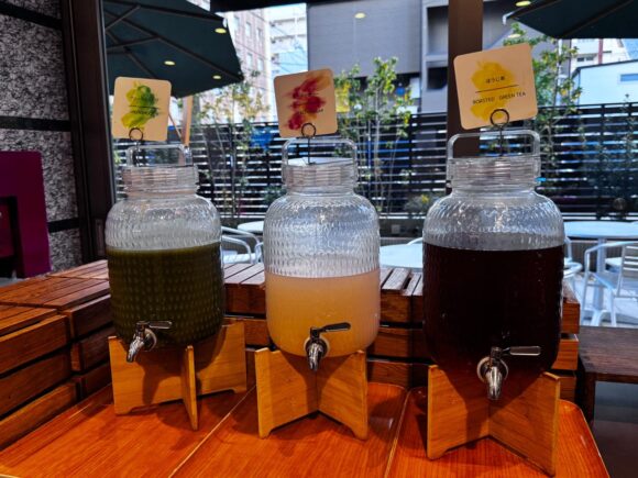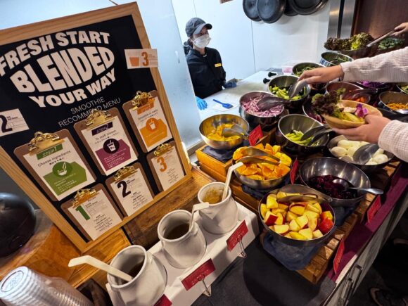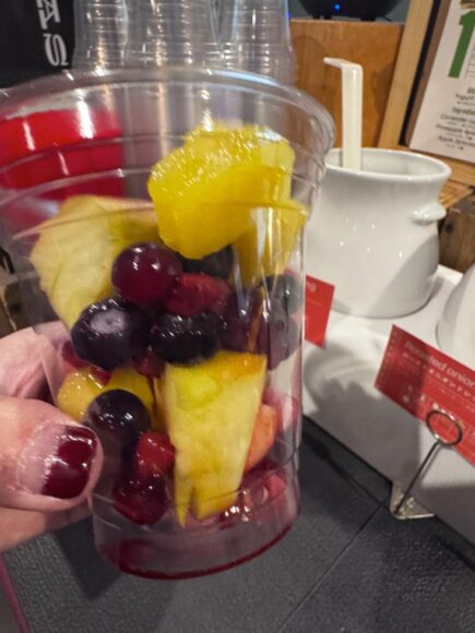 ちなみにさっきのサラダのところに果物もあって、それらを合わせてスタッフさんにお渡しすると、専用マシンでスムージーにしてくれます。