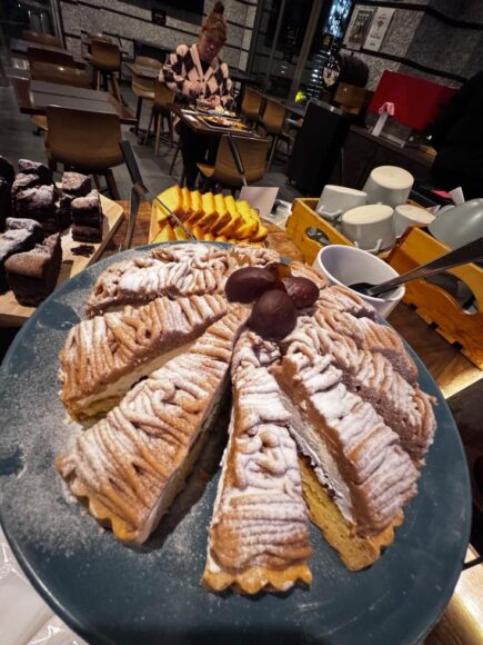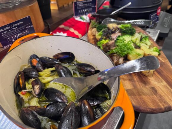 そこまで手がかかるものではないかもだけど、ムール貝が朝食に並ぶのは珍しいかも。貝のエキス、前夜にお酒飲んだ人には嬉しいよね。たっぷっりのネギやキャベツが一緒に蒸されてました。絶対美味しいやん。。