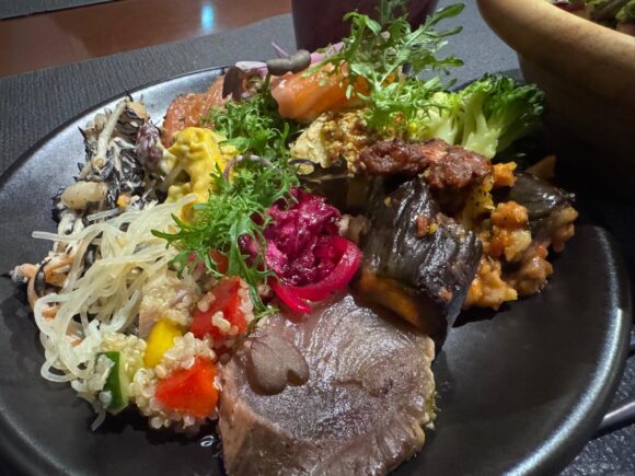 しかも、ぱっと見にわかる野菜の多さ!!うおおおお!日本の外食続きの旅で、これは嬉しい!