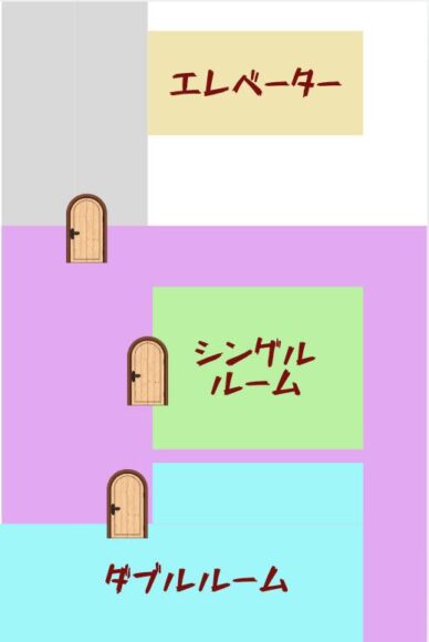 コネクトルームではないけど、エレベーター前のパブリックスペースを仕切ることで、かなりプライバシーが守られた空間に!