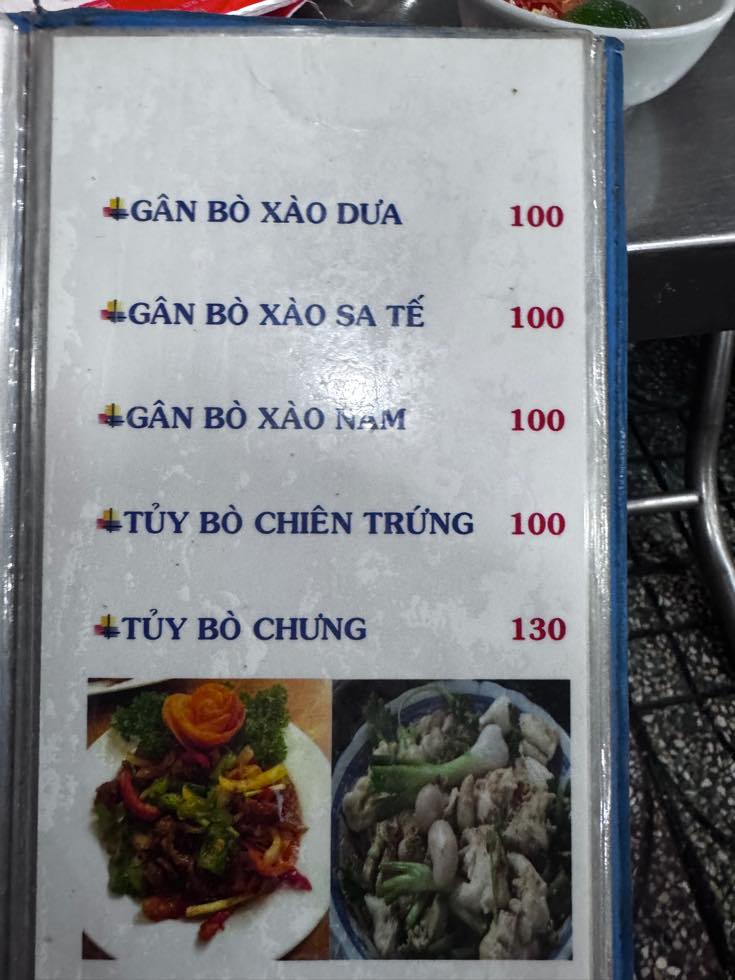 下は、Ganh Bo アキレス腱・筋のところの料理のようす。お店により料理により変わってくるけど、おでんに入ってるやつくらい、スジは煮込まれてるやつだといいけど、XAO(炒める)となってるからどんなふうに使われてるのか気になるなあ。