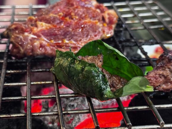 La Lot (Lotの葉)で包んで焼いて食べると、これが見事なマッチング!