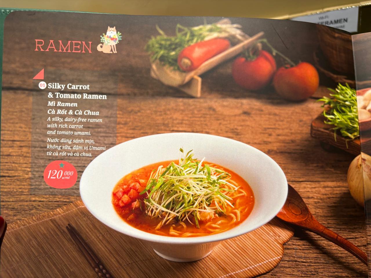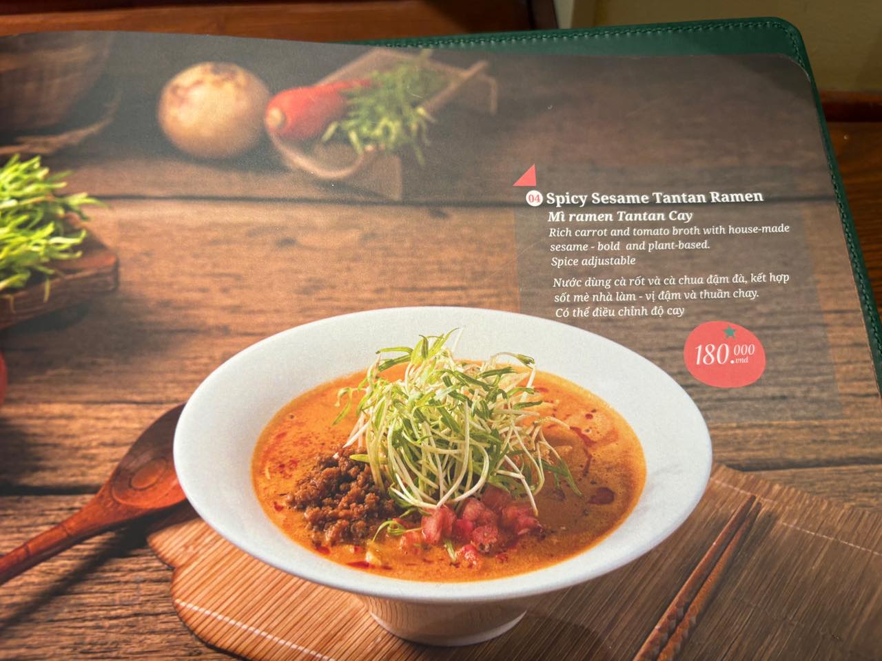 ラーメンはホーチミンではすっかり市民権を得てる感じがしますが、それでもこちらのように「ベジタリアンラーメン」となると、新ジャンル。