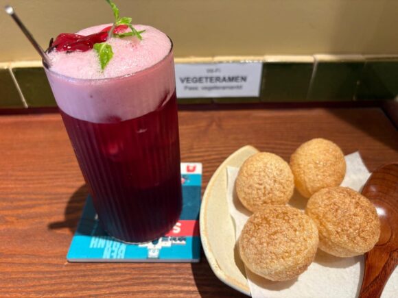ちなみにパニプリは、割ってこのようにスープに浮かべて食べましたが、めちゃちょいアクセントになったし、おいしかったです。