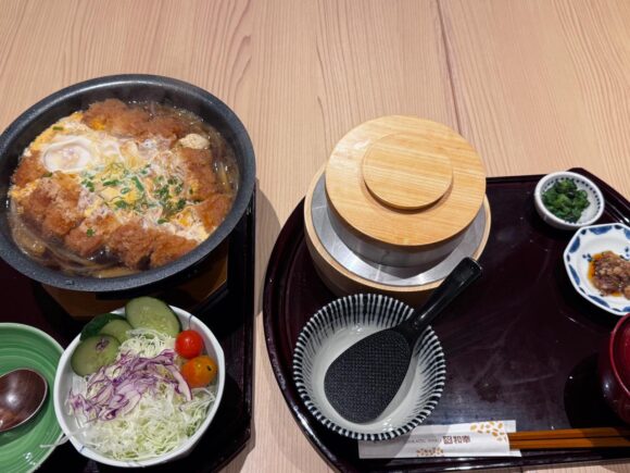 カツ以外のご飯とかお味噌汁、お新香に小皿ものなあどが小さなお膳に乗ってるのだけど、ちょっと無駄スペースが多いのよな。