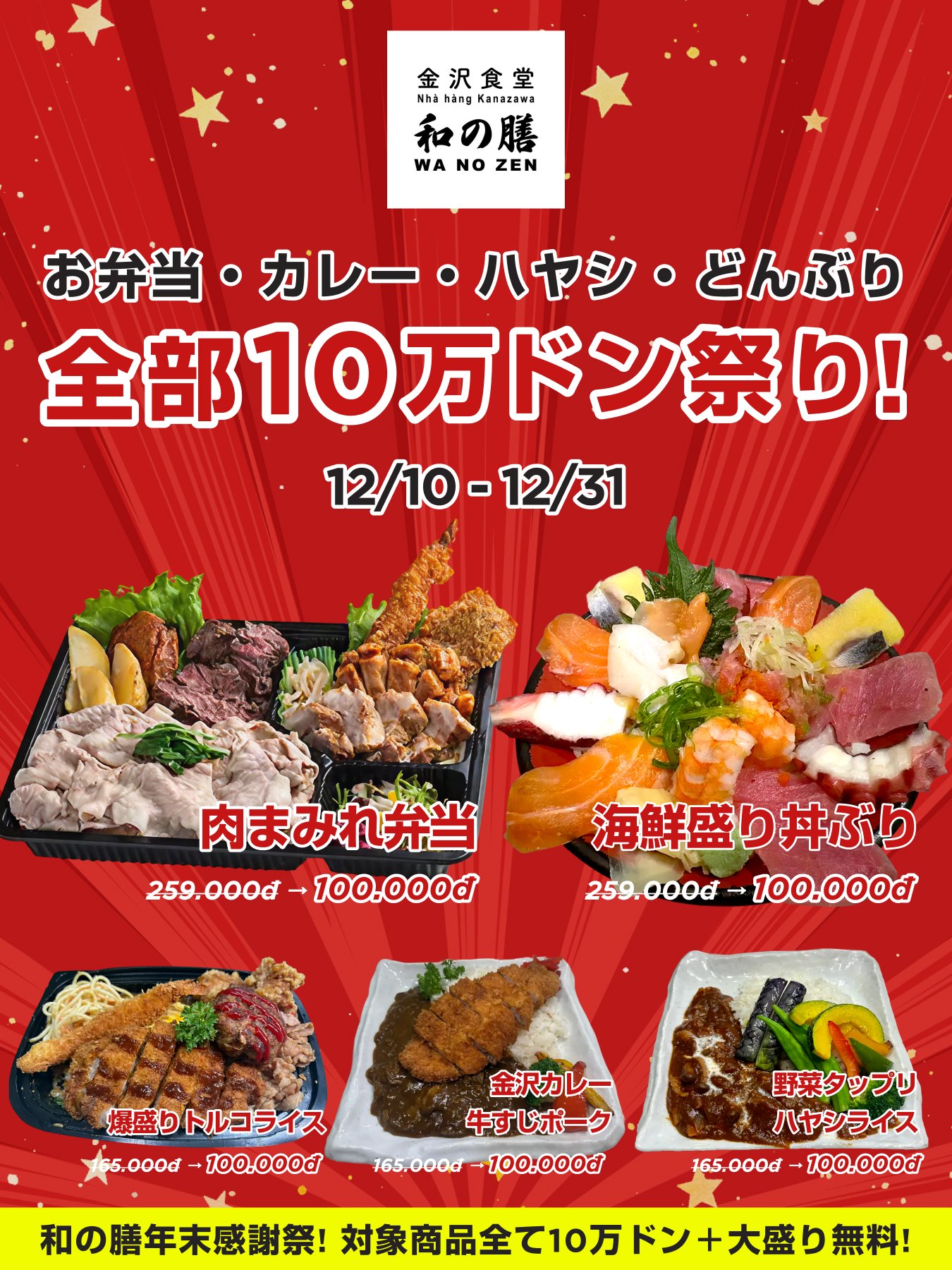 わーお、ご紹介したばかりでしたが、和の膳さん、なんと、対象商品10万ドン祭り開催中!!